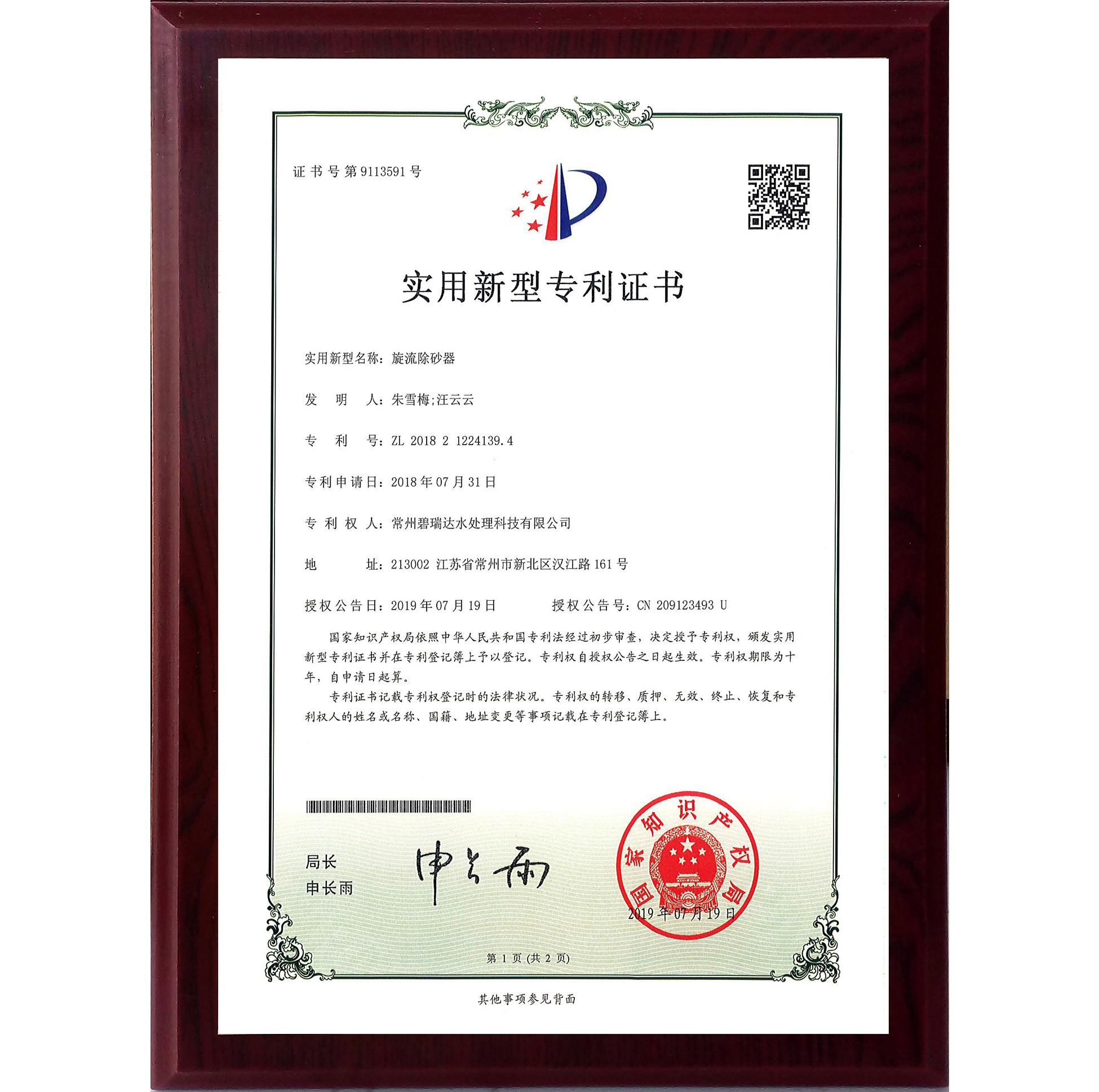 旋流除砂器是碧瑞达水处理公司实用新型专利产品(实用新型专利号:ZL201821224139.4),主要用来清除地下水和地下热水以及其他水源中的固体颗粒,适用于水源热泵系统。中央空调冷却水、冷冻水系统、冬季冷暖循环水系统、工业冷却水系统。广泛应用于化工、环保、食品、医药等许多工业部门,在水处理领域实现除砂、降浊、固液分离等效果显著。